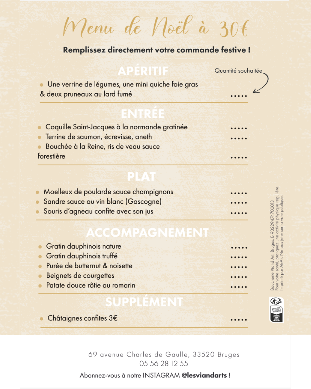 Bienvenue chez Les Viand’Arts, votre boucherie artisanale où passion et savoir-faire se conjuguent pour vous offrir le meilleur. Trois amis, forts de plus de 10 ans d’expérience, vous accueillent avec le sourire et l’envie de partager leur amour du métier. Nous sélectionnons avec soin des produits 100% français d’une qualité irréprochable. Découvrez notre large choix de préparations bouchères maison, idéales pour régaler vos papilles. Côté charcuterie et traiteur, notre expert charcutier, fort de 15 ans d’expérience, élabore des créations maison qui raviront vos envies gourmandes. Chez Les Viand’Arts, c’est bien plus qu’une boucherie : c’est une expérience conviviale et un engagement pour des saveurs authentiques.